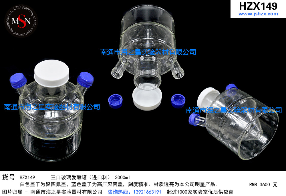 HZX149 三口玻璃发酵罐(进口料)