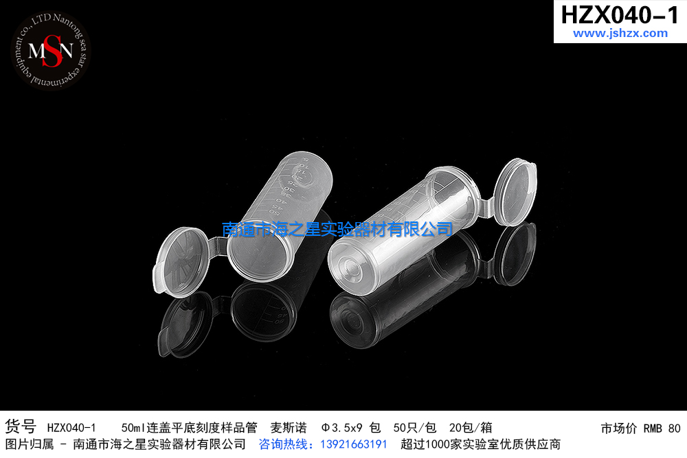 HZX040-1/50ml连盖平底刻度样品管