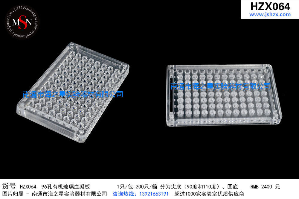 HZX064 96孔有机玻璃血凝板